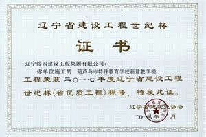 “葫蘆島市特殊教育學(xué)校新建教學(xué)樓工程”榮獲2017年度遼寧省建設(shè)工程世紀(jì)杯稱(chēng)號(hào)