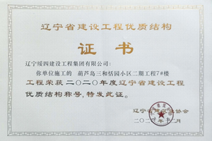 “葫蘆島三和恬園小區(qū)二期工程7#樓”榮獲2020年度遼寧省建設(shè)工程優(yōu)質(zhì)結(jié)構(gòu)稱(chēng)號(hào)