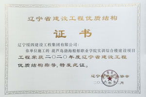 “葫蘆島渤海船舶職業(yè)學(xué)院實(shí)訓(xùn)綜合樓建設(shè)項(xiàng)目”榮獲2020年度遼寧省建設(shè)工程優(yōu)質(zhì)結(jié)構(gòu)稱(chēng)號(hào)