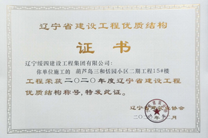 “葫蘆島三和恬園小區(qū)二期工程15#樓”榮獲2020年度遼寧省建設(shè)工程優(yōu)質(zhì)結(jié)構(gòu)稱(chēng)號(hào)
