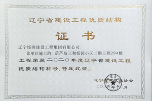 “葫蘆島三和恬園小區(qū)二期工程29#樓”榮獲2020年度遼寧省建設(shè)工程優(yōu)質(zhì)結(jié)構(gòu)稱(chēng)號(hào)