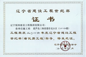 “葫蘆島三和榮郡住宅小區(qū)1-8#樓”榮獲2016年度遼寧省建設(shè)工程世紀(jì)杯稱號(hào)