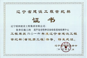“葫蘆島市特種設(shè)備檢驗(yàn)基地檢測(cè)中心”榮獲2016年度遼寧省建設(shè)工程世紀(jì)杯稱號(hào)