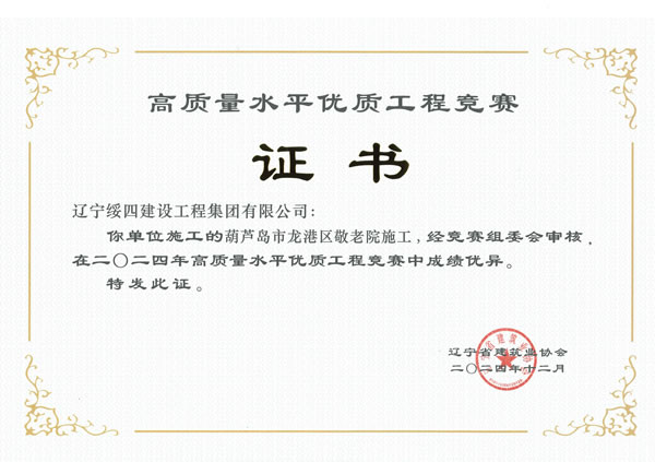 葫蘆島市龍港區(qū)敬老院施工項目被評為2024年市優(yōu)質(zhì)樣板工程