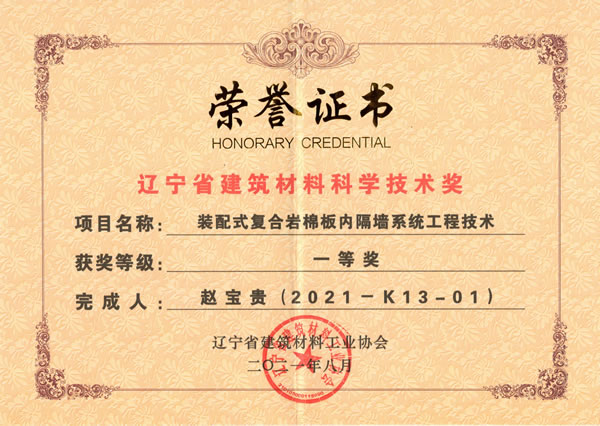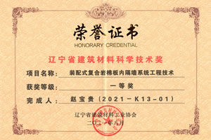 2021年度遼寧省建筑材料科學技術(shù)一等獎