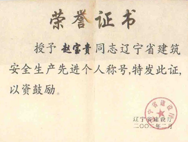 遼寧省建筑安全生產(chǎn)先進個人