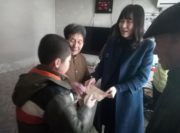 2018年3月6日,集團(tuán)工會主席劉霜、造價部部長明輝、財(cái)務(wù)部呂賀及實(shí)驗(yàn)小學(xué)趙瑞如老師等四人來看望慰問實(shí)驗(yàn)小學(xué)貧困學(xué)生信博,并送去米、面、油等生活用品及助學(xué)金。