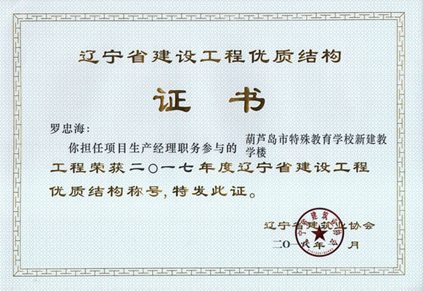 會(huì)上,國家住房和城鄉(xiāng)建設(shè)部工程質(zhì)量安全監(jiān)管司副司長吳慧娟女士在本次會(huì)議上作了《建筑行業(yè)發(fā)展趨勢》重要報(bào)告。大會(huì)表彰了2017年度遼寧省建筑業(yè)優(yōu)秀企業(yè)、工程建設(shè)質(zhì)量管理優(yōu)秀企業(yè)、優(yōu)秀信用企業(yè)、優(yōu)秀經(jīng)理、優(yōu)秀項(xiàng)目經(jīng)理以及第六批建筑業(yè)綠色施工示范工程、世紀(jì)杯工程等獎(jiǎng)項(xiàng)。我公司榮獲“2017年度遼寧省建筑業(yè)優(yōu)秀企業(yè)”、 “2017年度遼寧省工程建設(shè)質(zhì)量管理優(yōu)秀企業(yè)”、 羅忠海榮獲“2017年度遼寧省建筑業(yè)企業(yè)優(yōu)秀項(xiàng)目經(jīng)理”、 韓凱夫榮獲“2017年度遼寧省建筑業(yè)企業(yè)優(yōu)秀項(xiàng)目經(jīng)理”、 王鐵山經(jīng)理榮獲“2017年度遼寧省建筑業(yè)企業(yè)優(yōu)秀項(xiàng)目經(jīng)理”、“ 葫蘆島市特殊教育學(xué)校新建教學(xué)樓”榮獲遼寧省世紀(jì)杯工程、“葫蘆島市特殊教育學(xué)校新建教學(xué)樓”與 “葫蘆島市龍港區(qū)中心幼兒園”“ 葫蘆島市公安局業(yè)務(wù)技術(shù)用房”榮獲遼寧省優(yōu)質(zhì)主體工程、羅忠海經(jīng)理承建的葫蘆島市龍港區(qū)中心幼兒園榮獲“第六批遼寧省建筑業(yè)綠色施工示范工程”。
