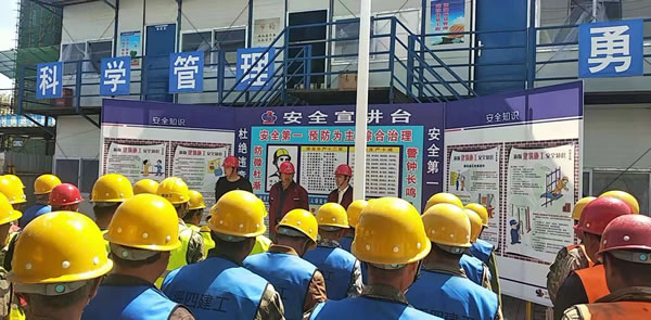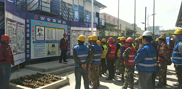 會上,集團(tuán)安技部于海從人的不安全行為、物的不安全狀態(tài)、現(xiàn)場作業(yè)環(huán)境等方面進(jìn)行了公司級安全教育。現(xiàn)場管理人員劉政、彭麗群分別進(jìn)行了項(xiàng)目級安全教育,并要求班組長每天班前進(jìn)行班組級安全教育。
