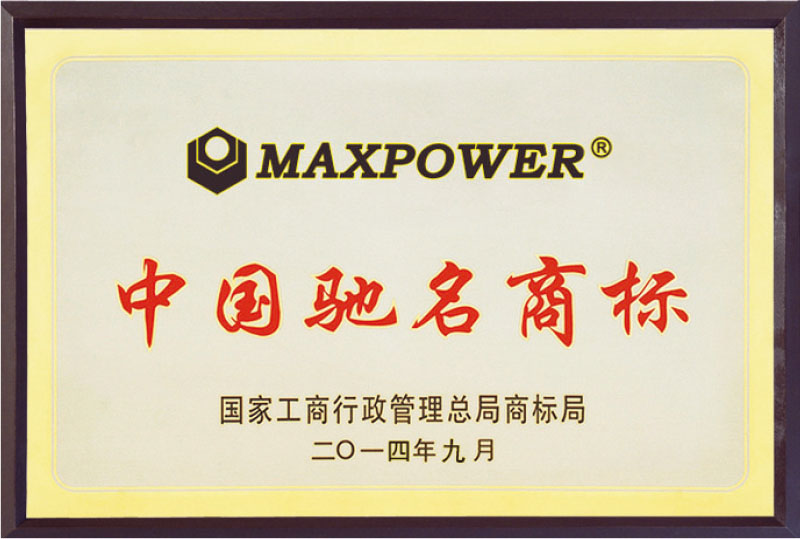 MAXPOWER品牌被國家工商行政管理總局認(rèn)定為中國馳名商標(biāo)。