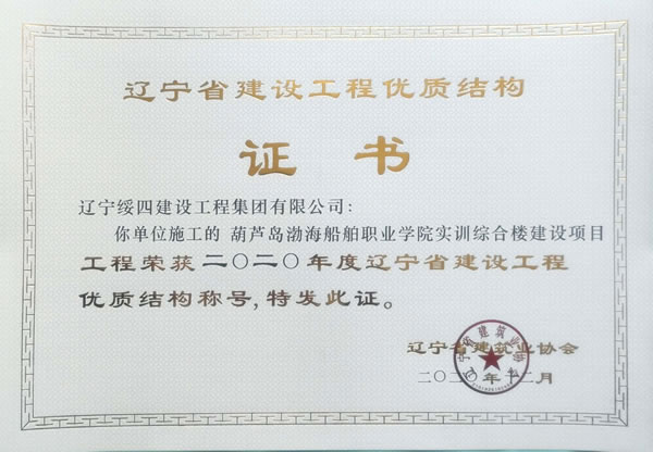 “葫蘆島渤海船舶職業(yè)學(xué)院實(shí)訓(xùn)綜合樓建設(shè)項(xiàng)目”榮獲2020年度遼寧省建設(shè)工程優(yōu)質(zhì)結(jié)構(gòu)稱號(hào)