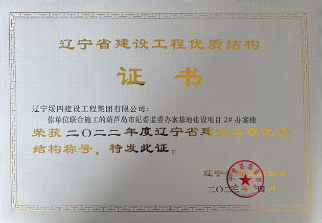 葫蘆島市紀委監(jiān)委辦案基地建設項目 2# 辦案樓榮獲2022年度遼寧省建設工程優(yōu)質結構稱號