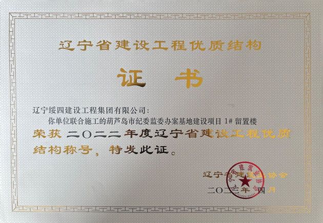 葫蘆島市紀委監(jiān)委辦案基地建設(shè)項目1# 留置樓榮獲2022年度遼寧省建設(shè)工程優(yōu)質(zhì)結(jié)構(gòu)稱號