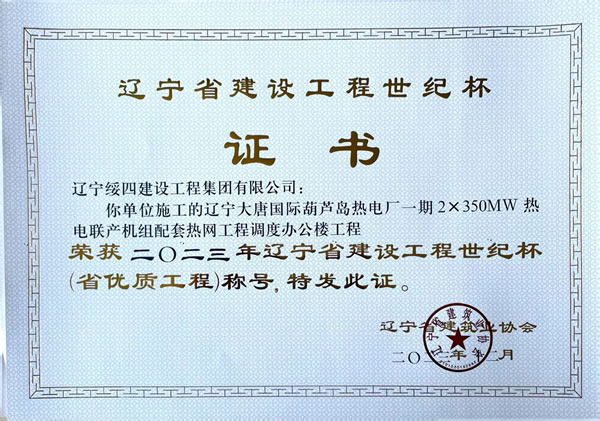 | 遼寧大唐國際葫蘆島熱電廠一期2×350MW熱電聯(lián)產(chǎn)機組配套熱網(wǎng)工程調(diào)度辦公樓工程 榮獲2023年遼寧省建設工程世紀杯(省優(yōu)質(zhì)工程)稱號 |