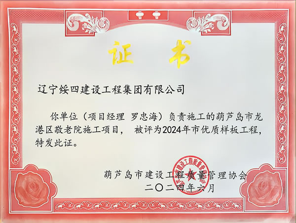 葫蘆島市龍港區(qū)敬老院施工項(xiàng)目被評(píng)為2024年市優(yōu)質(zhì)樣板工程